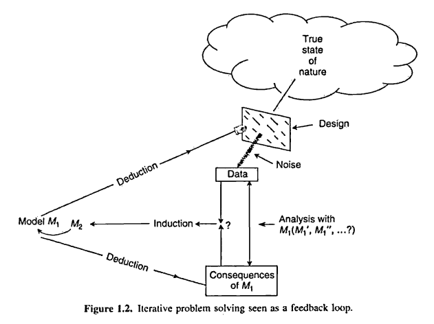 A figura abaixo mostra o processo dedutivo-indutivo como um “loop de feedback” (extraída de Box, Hunter e Hunter):
