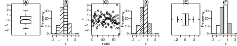 Questão 2 Considere o comando: x <- rnorm(100) e considere os gráficos a seguir.