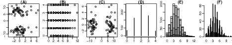 x2 <- rnorm(100, c(-6,6), 1.7) x3 <- rbinom(1000,3, 0.5) x4 <- rpois(1000,3)